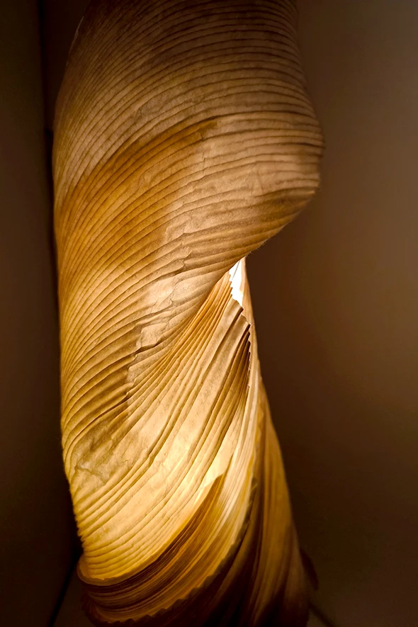 Nomos – che a Ingo Maurer deve anche la scelta di forme semplici e l’ardita sperimentazione materica. Anche il tema della trasmissione della luce è fondamentale: per Maurer non era qualcosa da nascondere, ma da valorizzare. Per questo, nelle sue lampade, circuiti e altri dettagli tecnici sono spesso lasciati a vista, o diventano estetici, quasi decorativi: un’idea che ha ispirato la nostra ricerca, tuttora in corso, sui circuiti in rame, il nostro materiale d’elezione.