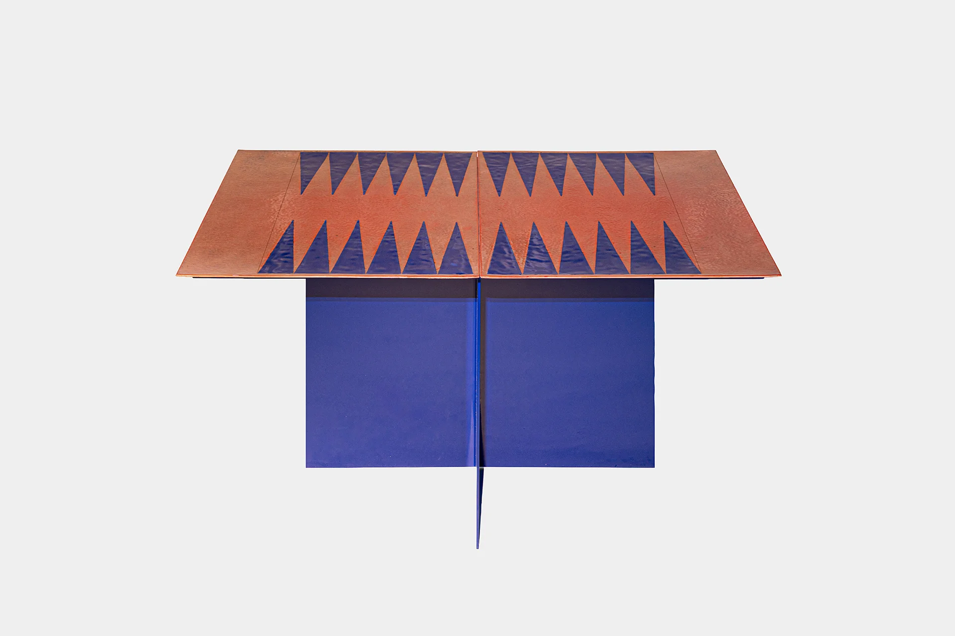 Incalmi reinterpreta uno dei design iconici di Claudia Pignatale, il tavolino Across. Come un origami di rame, il coffee table Across Backgammon è caratterizzato dalla base a forma di croce e dal piano quadrato su cui è riportata la tavola del backgammon. La decorazione è realizzata a champlevé, una tecnica risalente all’epoca romana che consiste nel riempire delle piccole cavità scavate sulla superficie con smalto vitreo.